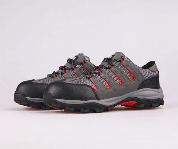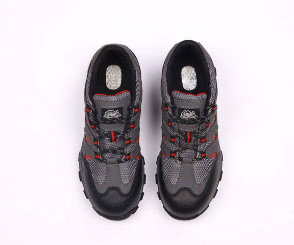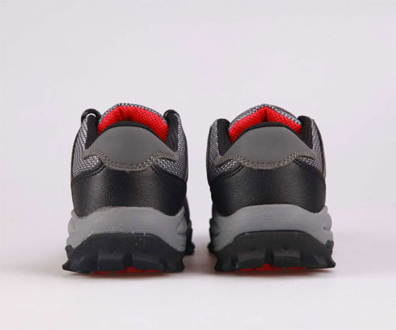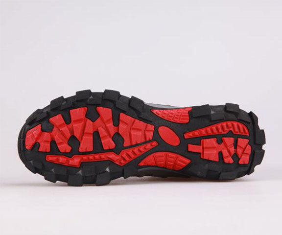 # AN1型防砸钢头# 凯夫拉防刺穿中底# 超纤维网布鞋面,水泥纹防踢头# 黑+红色户外MD/橡胶材质大底# 加厚型Hi-Poly吸汗鞋垫