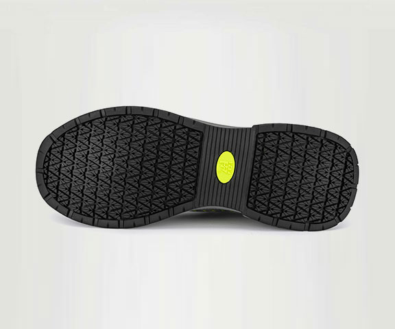 适合硬质地面多油水、润滑剂等易滑倒工况下使用,防滑系数是欧标SR标准的两倍以上; 不建议在室外多砂石的松软地面使用,易降低大底防滑性能。