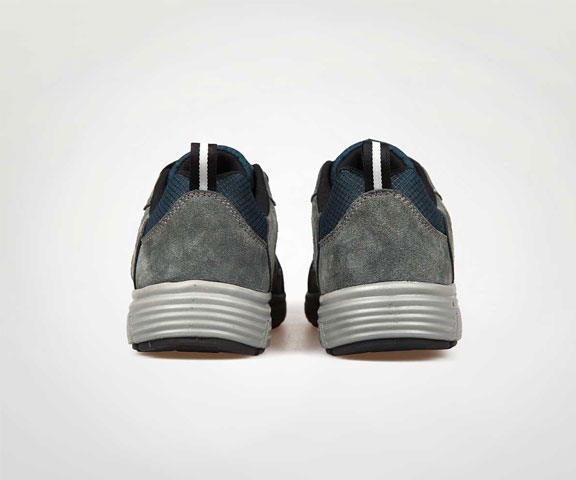 # 灰色反毛牛皮加透气网布鞋面